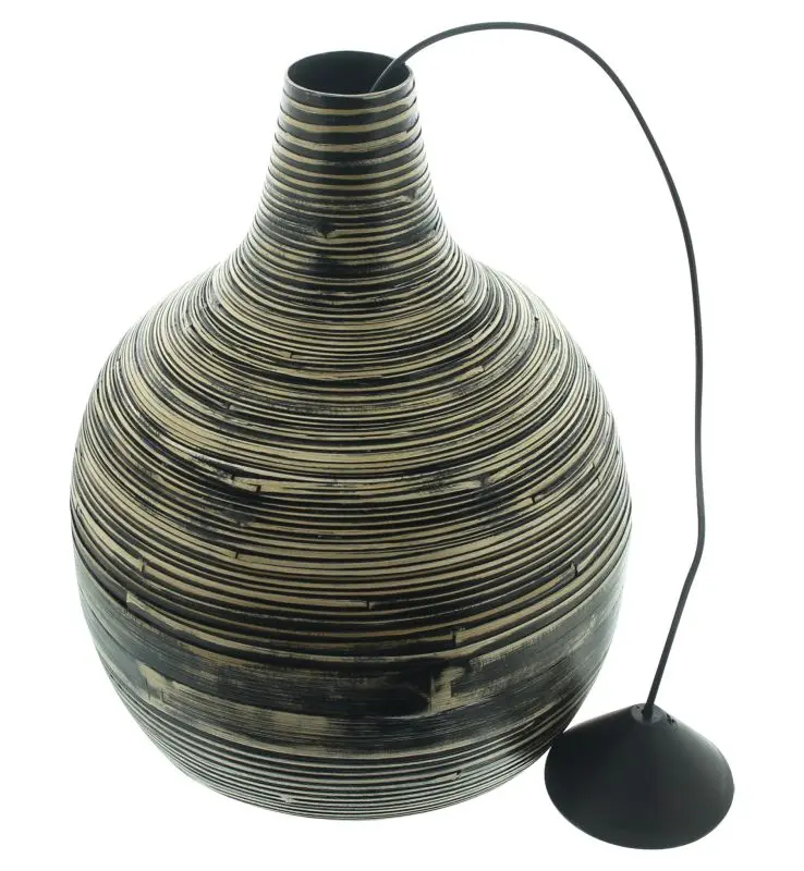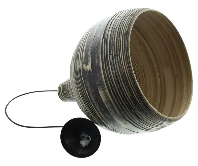 Harmonische Deckenlampe in modernem Design. Bambus schwarz/natur lackiert. Kabel 65 cm - kann gekürzt werden. Maße: Ø 35 x 42 cm. Leuchtmittel (max. 60W/E27) nicht enthalten. Nur für den Innenbereich.