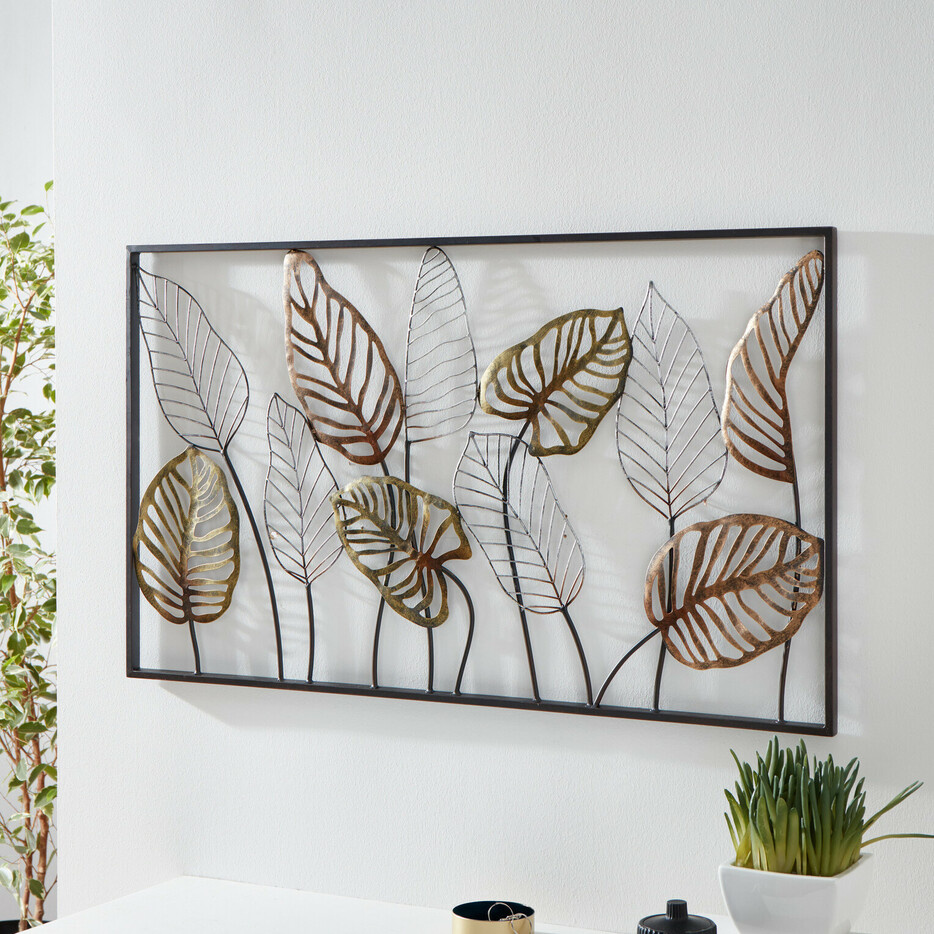 Wanddeko in angesagten Metallictönen, schwarzer Rahmen, leichte Kupferpatina