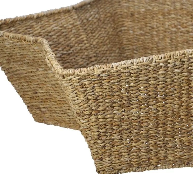 Naturbelassenes Seegras, aufwändig von Hand auf einen Metallrahmen geflochten. Besteht aus 2 Teilen zur einfachen und platzsparenden Lagerung. Ø 95 x 26 cm