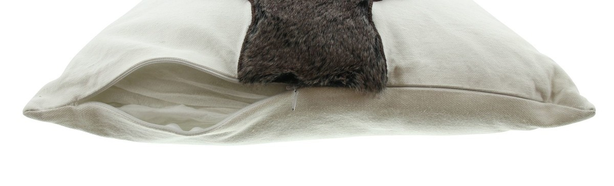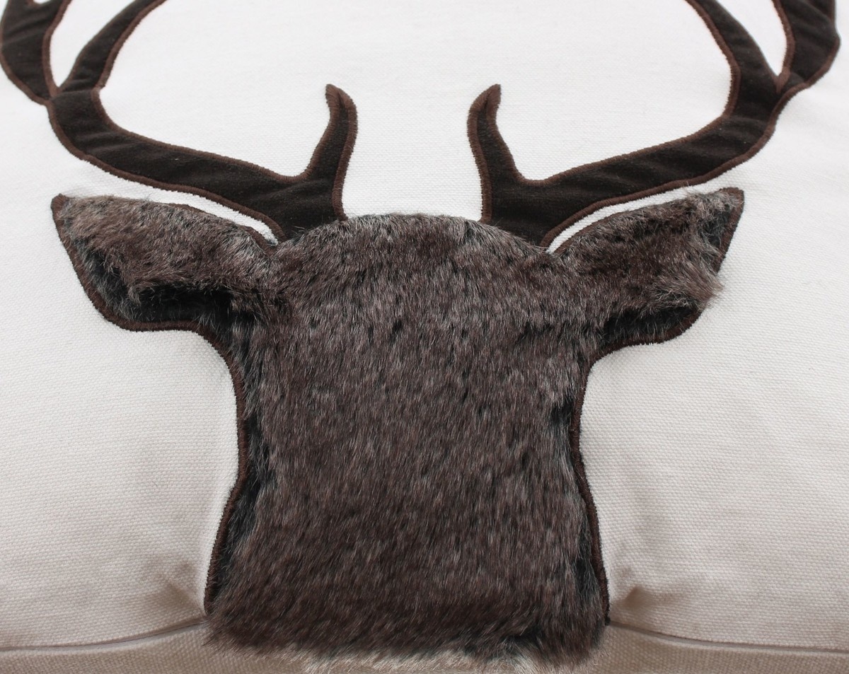 aufgenähte Hirschapplikation mit Kunstfell auf cremeweißer Baumwolle, eingearbeiteter Reißverschluss