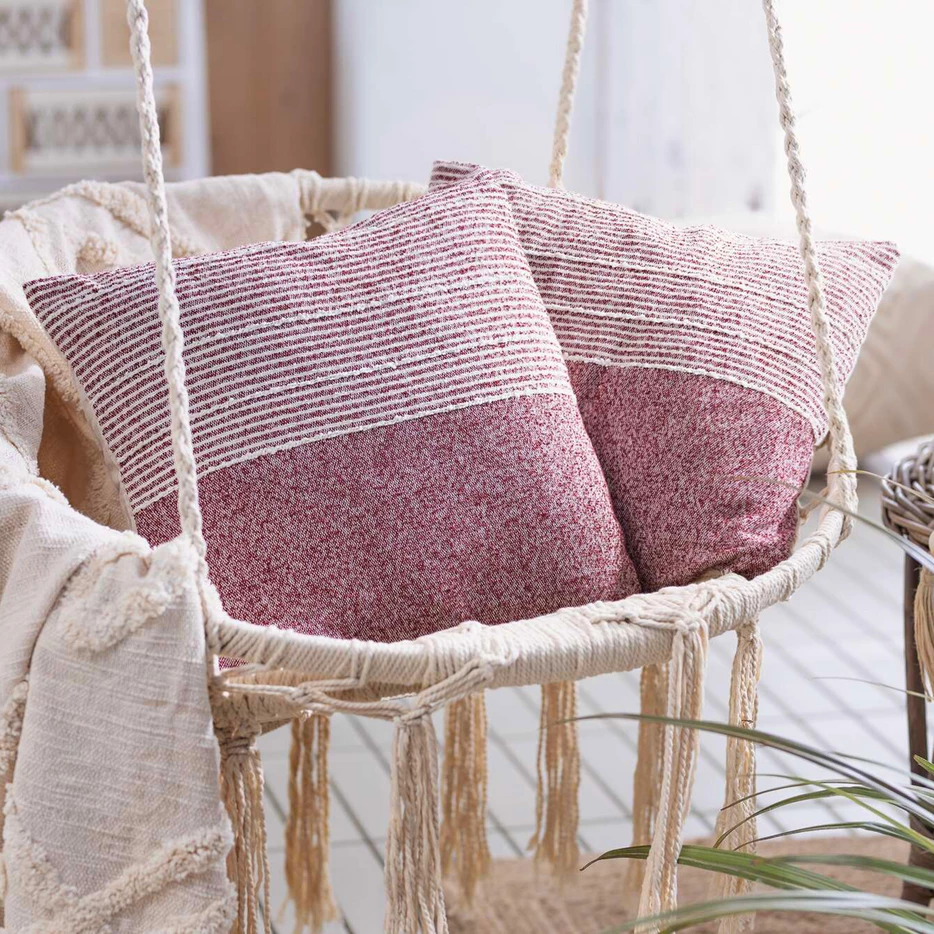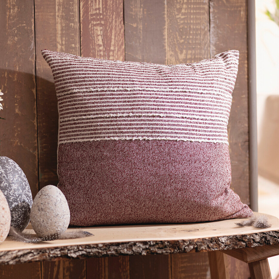 grobes Webmuster in beige und rot, Rückseite uni, mit praktischem Reisverschluss