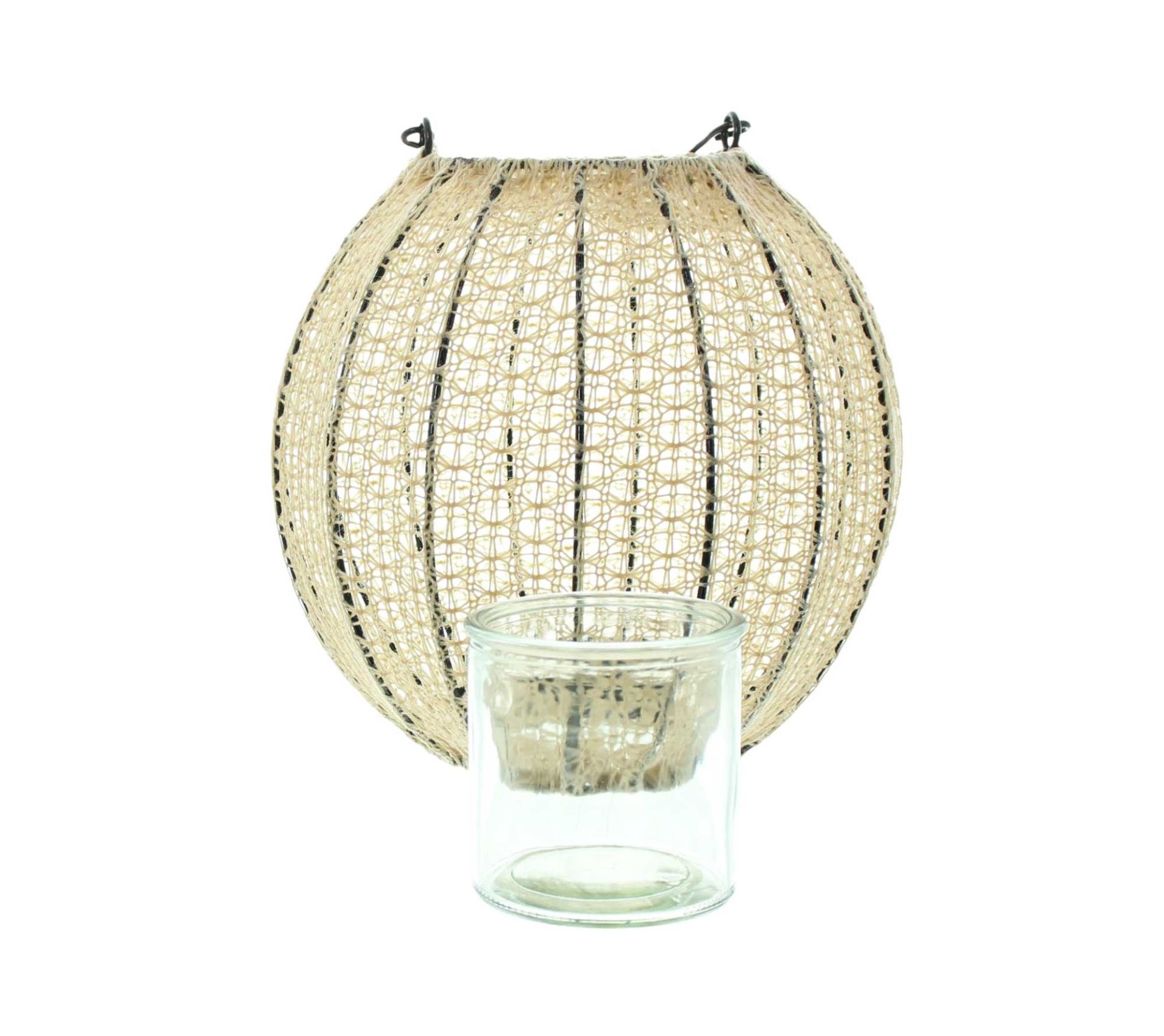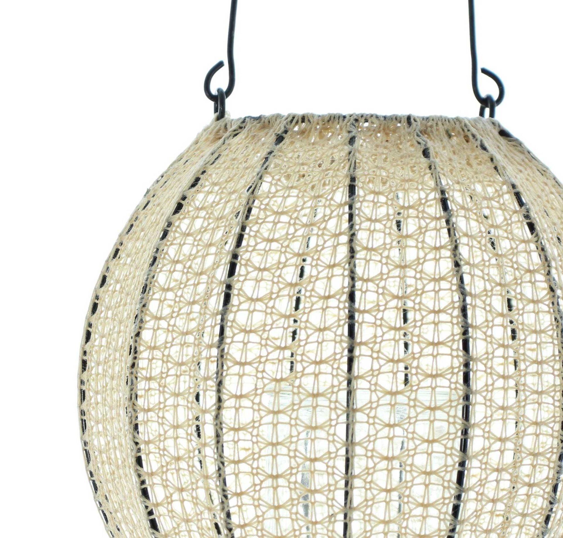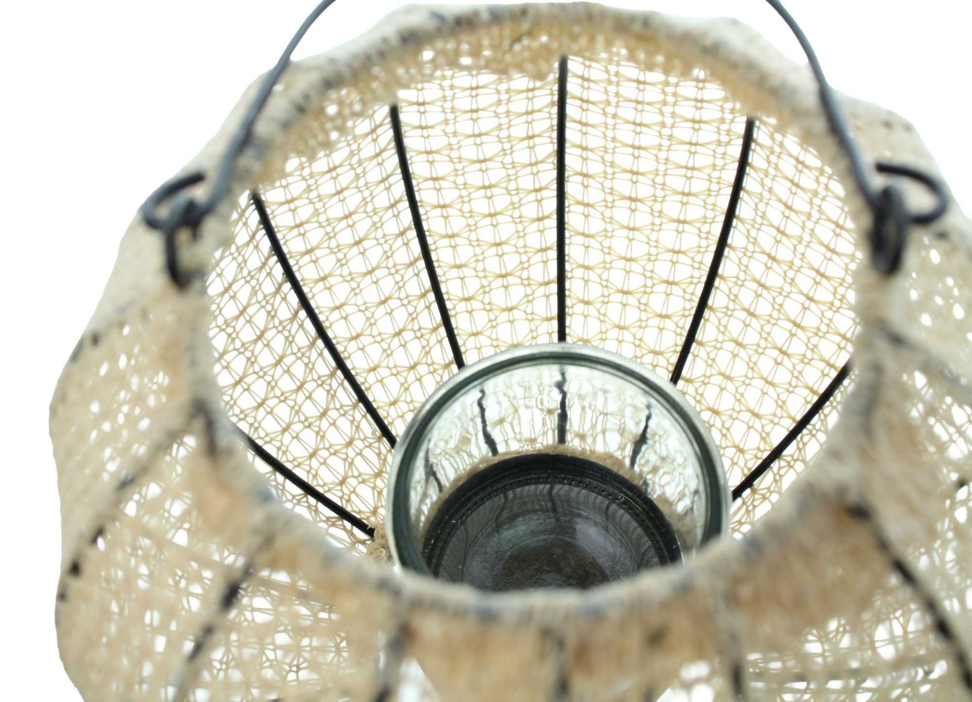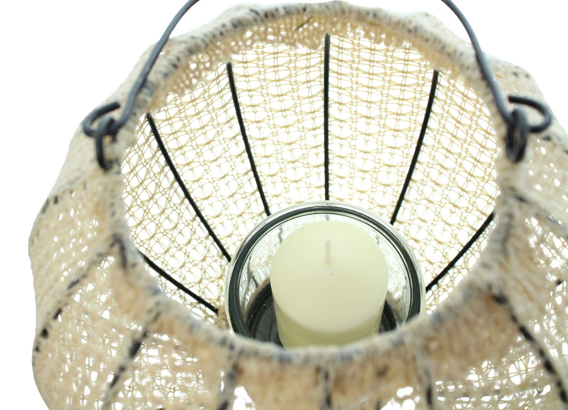 schöne Leuchteffekte durch kunstvoll gehäkeltes Garn, beschichtet, schwarzer Metallrahmen, beweglicher Henkel, herausnehmbarer Glaseinsatz