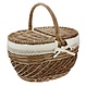 aufwändig geflochtener Weidenkorb mit zwei aufklappbaren Deckeln in warmem Naturton, herausnehmbare Textileinlage mit Häkelborte in Creme