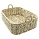 stabil geflochtenes Schilfstroh, lackiert, mit Holzrahmen und seitlichen Griffen