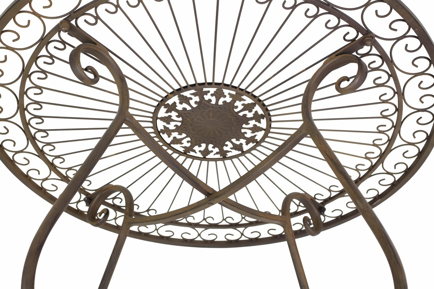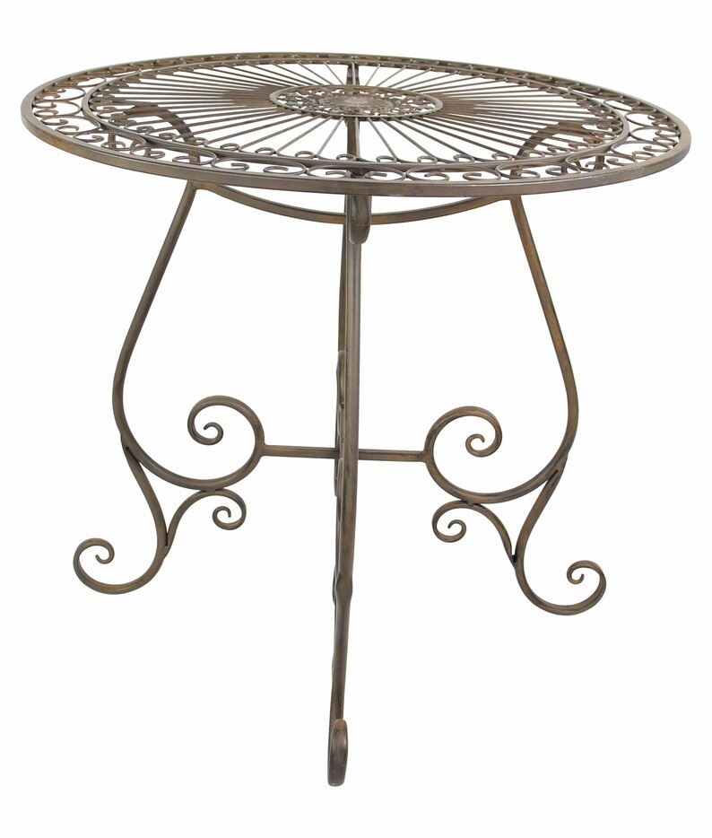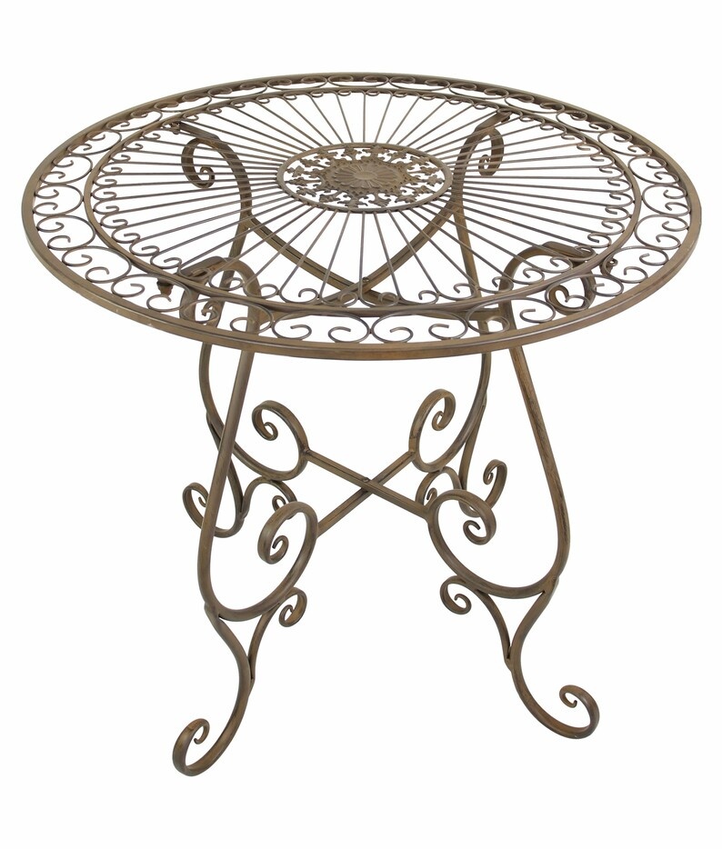 dunkelbrauner Metalltisch in kunstvoll verspieltem Design mit dezenter Antik-Optik, solide gearbeitet