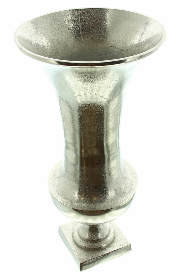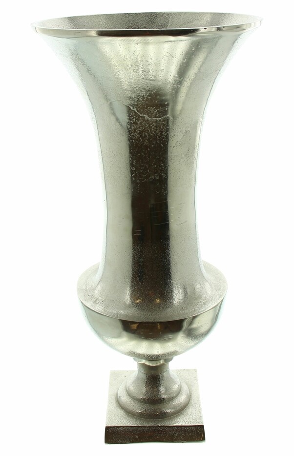 stilvolle Pokalvase mit Sockel, silberfarbenes Aluminium mit Antik-Finish