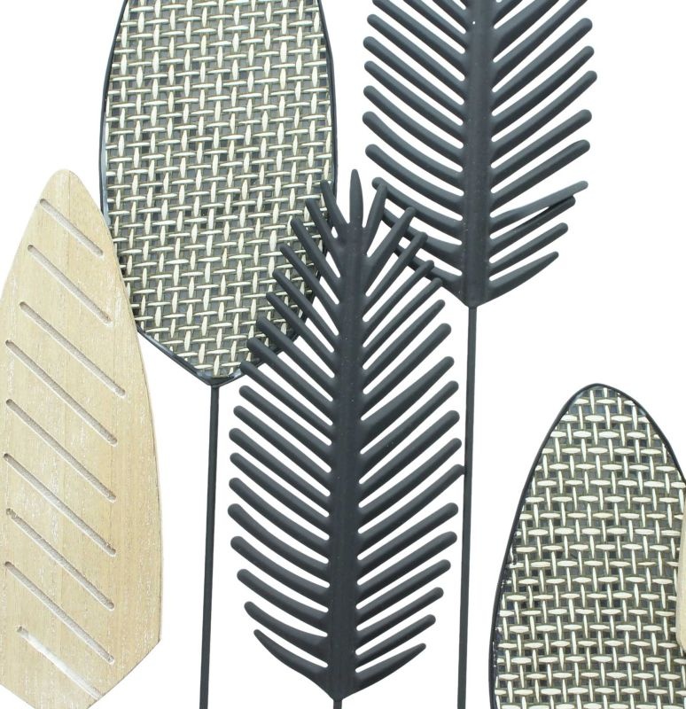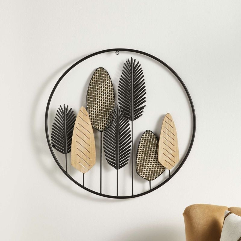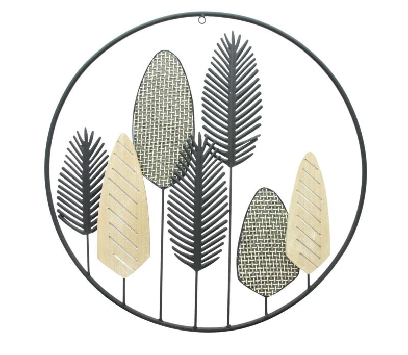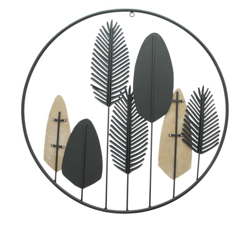 rundes Wandobjekt Blattwerk – mattschwarz & weiß gekalkt