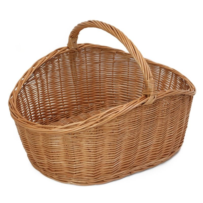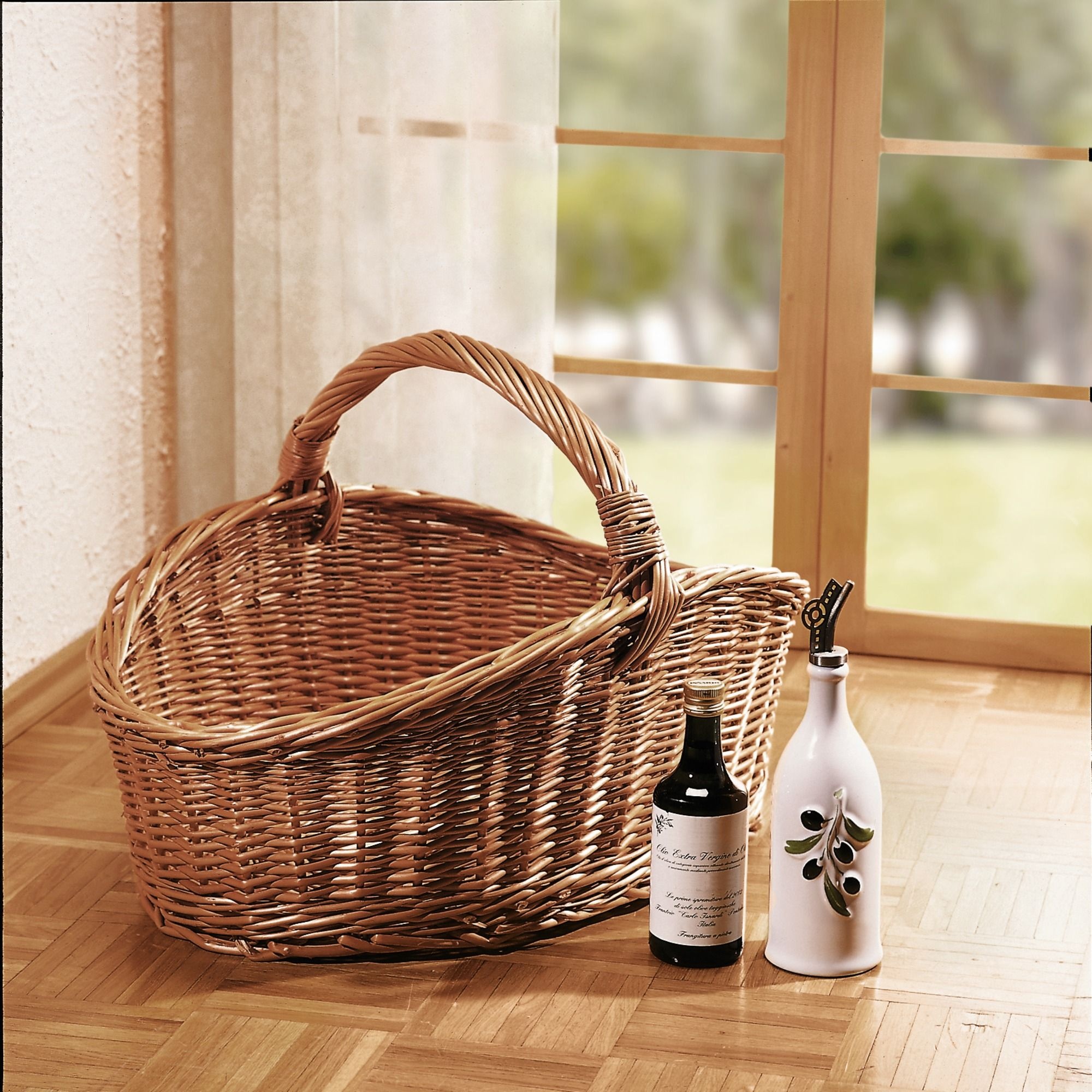 klassischer Tragekorb aus Vollweide, natur, stabiler Bügel, handgeflochten in Europa